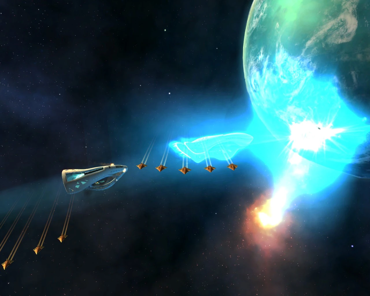 Fighters attacking a capital ship