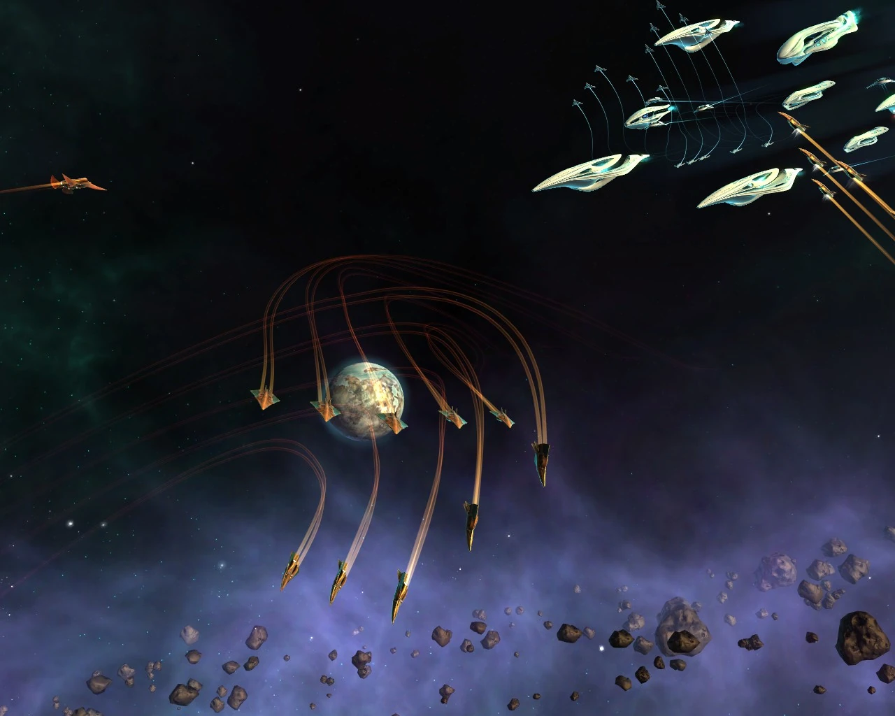In this phase fighters return to their ships and re-assume their positions behind the ships. However, if they have no ships to return to, they fire one more volley at the enemy fleet before flying towards the nearest planet.
